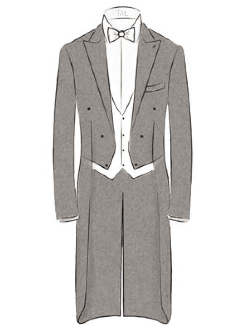 This is the most formal option for night time dress and it creates the dress code name “white tie”. It is usually worn with a white waistcoat and bow tie and the most conservative of the bunch will also wear a tophat and white gloves.