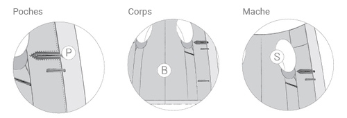 ! Pour une veste demi-doublée, seulement les manches et le haut du dos seront doublés.